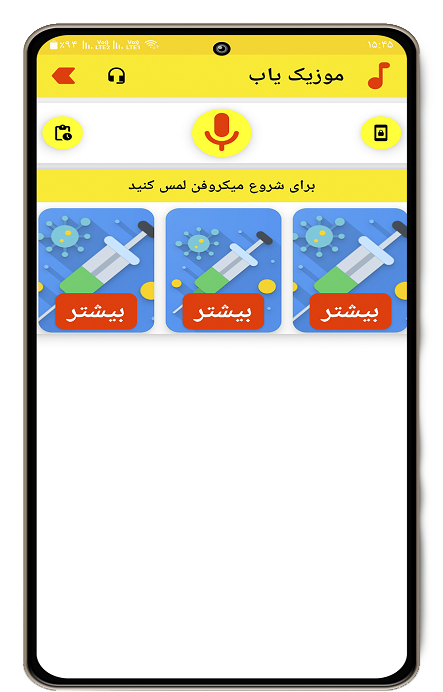 در این بخش عکس های از قسمت های مختلف اپ موزیک یاب برای کاربران گرامی قرار داده شده است تا کاملاً با محیط این برنامه آشنا بشوند
